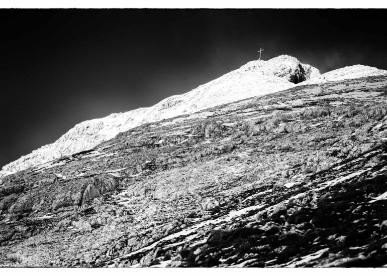 Ich steige noch etwas höher und komme schon in die Nähe des Gipfelkreuzes. Gleichzeitig meldet sich mein Kreislauf, doch bitte heute nicht zu übertreiben.