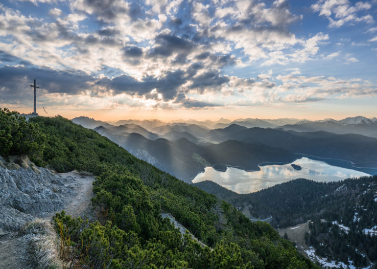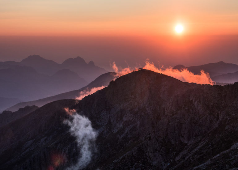 Gipfel und Seen der Berge in einmaligem Licht.