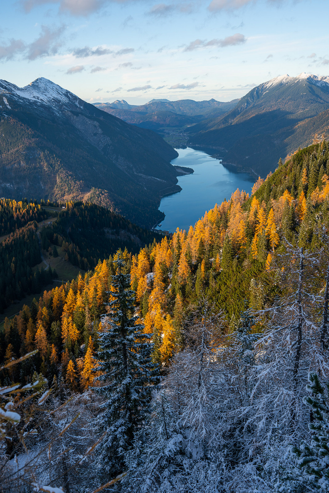 Nach dem Achenpass, dämmerte mir, angesichts der schneebedeckten Gipfel, dass die warmen Herbsttage wohl nur im Flachland zu spüren waren und es in den Bergen bereits Winter ist.