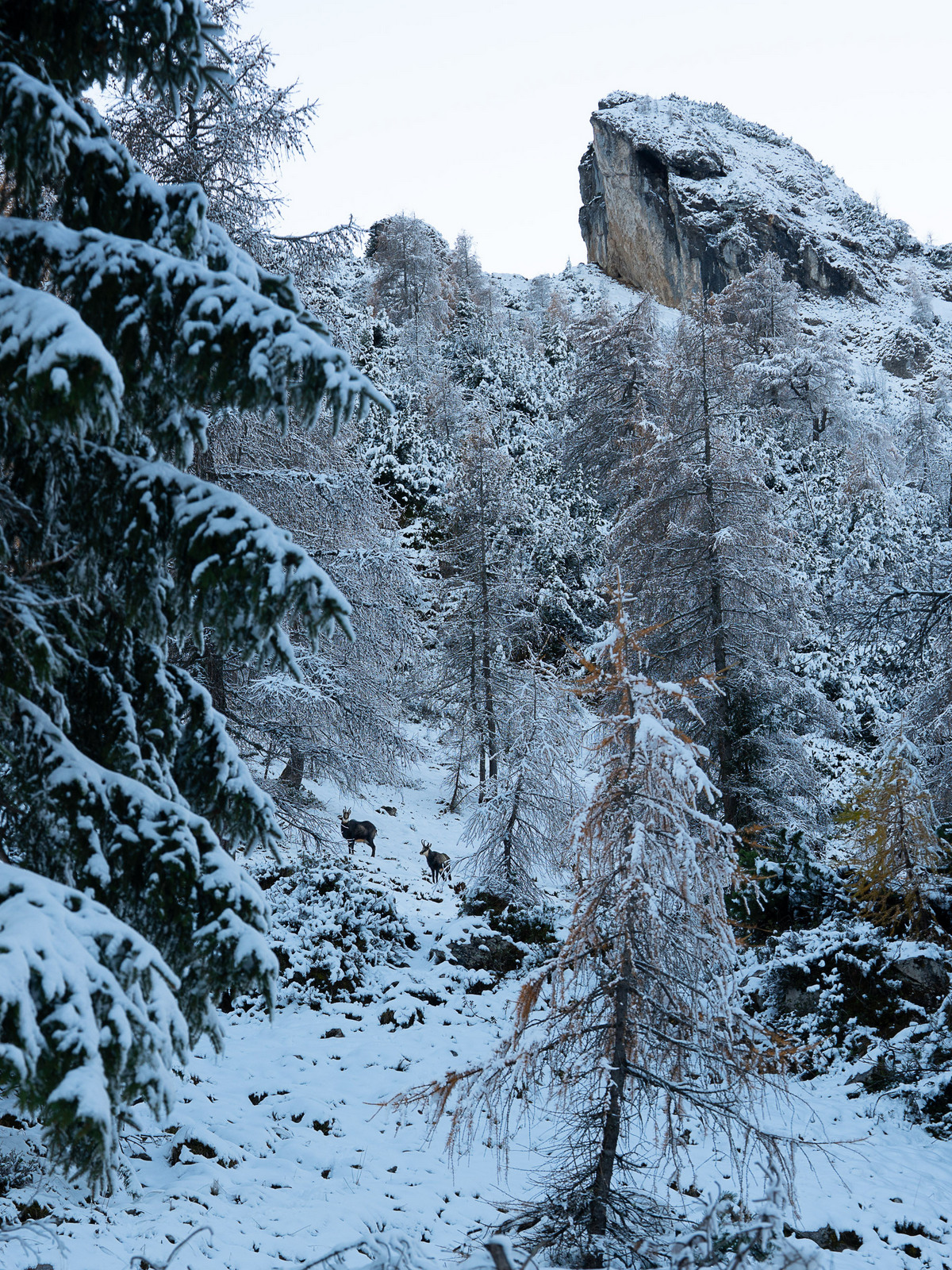 Bein Rückweg tauchten einige Gamsen auf, sich langsam auf den Gegenhang zurückziehend.